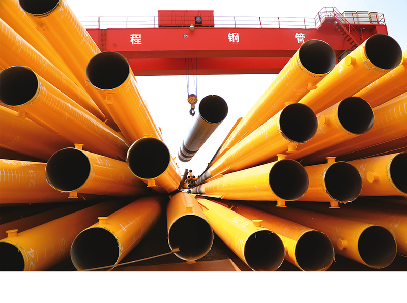 该订单有直径1.52米、长15米和直径1米、长4米的两种钢管,677根,重2300吨,将于5月23日交齐。
