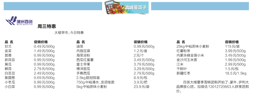 滨州百货周三特惠