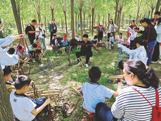 在村长的指导下,孩子们用小铲子挖出整齐的土窝,小心翼翼放入向日葵幼苗,50多株小向日葵将在九月绽放。在马扎课堂上,彩色的丝带在孩子们手中穿梭成经纬。在志愿者手把手的指导下,小朋友们骄傲地举起跟爸爸妈妈一起编织的马扎,让传统技艺的种子在童心里发了芽。摔泥巴将活动推向高潮。孩子们把胶泥捏成碗状用力摔向青石板,“啪”的一声脆响后,泥碗底部炸开小洞,阳光下飞溅的泥珠折射出彩虹。