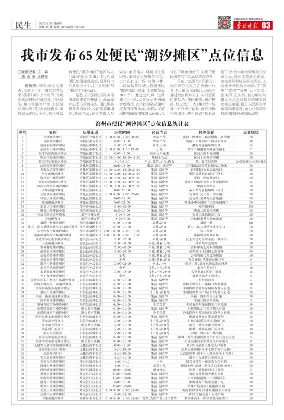 我市发布65处便民“潮汐摊区”点位信息