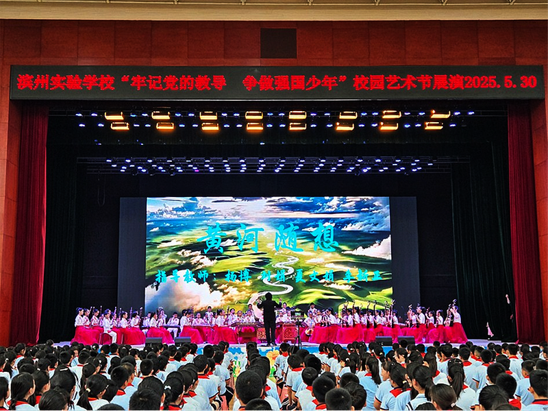 晚报滨州讯 近日,滨州实验学校报告厅内灯火通明,民乐团少年们以一场气势恢宏的民乐合奏《黄河随想》,礼赞“六一”儿童节。