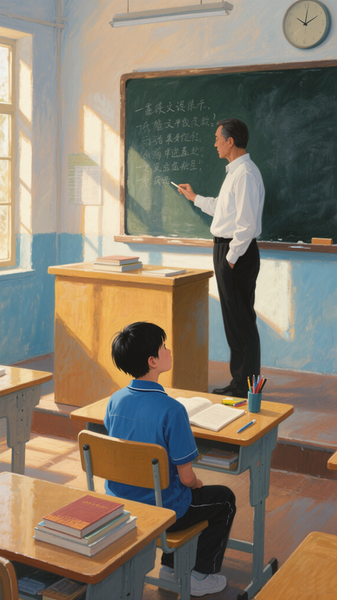 起初,你给我的印象不算太好。课前书本老是准备不及时,我进教室时,你往往刚拿出来,或者还在抽屉里。上课坐姿不够端正,老是向右斜着身子,现在想来,大概是你在南边,想尽力面对老师和黑板的缘故吧。还有时脑门上青筋暴跳,和周围同学大声争吵,有不遵守纪律的嫌疑,现在想来,也许是因为某个题的答案发生了争执吧。更有时回答问题不用普通话,我也因此批评你的课堂语言不规范,现在想来,那也许是你强烈表达自己内心见解的冲动。唉,现在想想,那时对你要求有点太完美了吧!你毕竟只是个十二三岁的孩子。