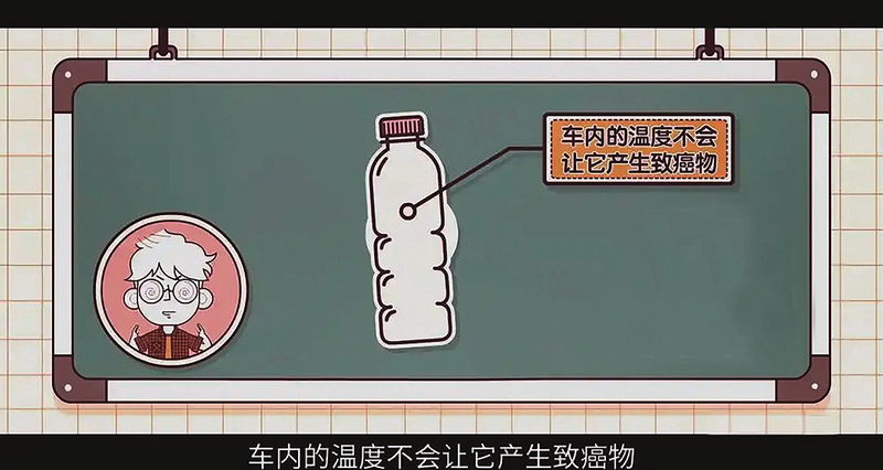 也就是说,只要矿泉水瓶材质符合国家标准,即便是在车内高温环境下,也不会产生致癌物质。