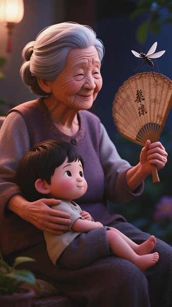 炎炎烈日逐渐退去,傍晚的村庄格外清爽,红红的太阳在余晖中默默燃烧,给村庄盖了一层蝉翼般的红纱衣。每当这时,我总会和奶奶坐在村口的大槐树下,听她讲述老一辈的故事,那是我童年里最幸福的事。一日复一日,一年复一年,在奶奶的悉心照料下,我渐渐到了上学的年龄。住在城里的父母为了让我接受更好的教育,决定让我回到城市里读书。那时的我,既对农村的奶奶满是眷恋,又对城市的一切满怀新奇。很快就到了去城里的前一天晚上,我照旧和奶奶来到大槐树下,听她讲故事,我依偎在奶奶的怀里,奶奶一边摇着旧扇子为我驱赶蚊子,一边给我讲故事。