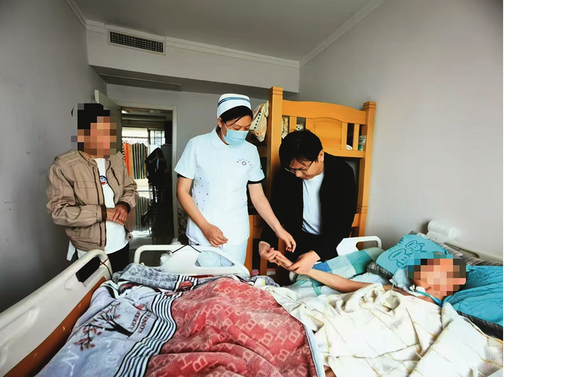 前不久,长期卧床、家住楼房高层的闫大爷突发胃管堵塞,家属紧急求助。中医院医护人员闻讯,立即通过微信指导,线上预约“互联网+护理”,同时由脑三科主任汪晓锋带队冒雨上门。团队迅速评估、规范更换胃管,并耐心讲解护理要点。解决了燃眉之急,家属竖起大拇指:“急得没了主意,多亏你们冒雨赶来!技术专业、话语暖心,一下子就踏实了!”