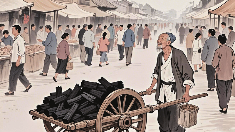路人:(重复一遍,提高声音)一车炭500文,卖不卖?