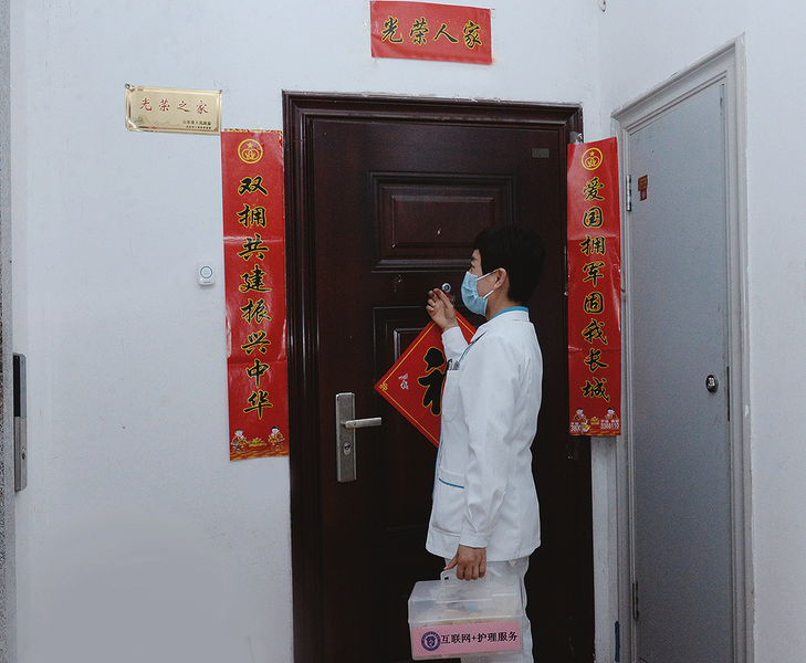 事情要从2022年说起。那年8月的一个休息日,时任滨医附院护理部主任的陈晓琳接到一条求助信息:一位九旬老人急需医疗帮助。她随即与老人取得联系。电话里,老人焦急地解释:自己家住滨州一棉小区,老伴耳朵化脓急需就医,但90多岁的老伴行动不便,常年无法下楼。老人的儿女均已70岁上下,且常住青岛,只能轮流回滨州照料,一家人正为就医难题一筹莫展,希望请医生上门就诊。