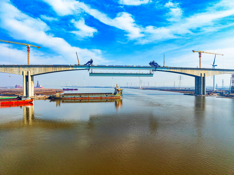作为G228丹东线滨州段的关键控制性工程,套尔河特大桥全长4334米、主跨跨径达338米,建成后将成为世界第一跨径混合梁桥,不仅填补了中建八局在顶级梁桥建设上的空白,还打通了滨州北部沿海通道,将套尔河两岸通行时间由90分钟缩减至5分钟。