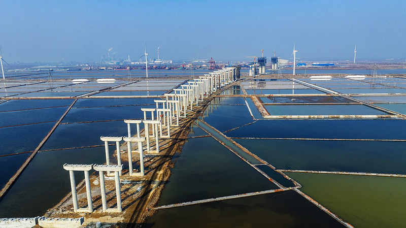 G228丹东线——项目名称虽然只有短短几个字,实际距离却横跨祖国南北,始于辽宁丹东,终于广西东兴。其中,滨州段全长42.5公里,总投资30亿元,采用双向四车道一级公路标准建设,是集边防和沿海开发功能于一身的沿海高等级公路。中建八局中标项目后,由老党员带队率先进驻百万亩盐碱地,实地验证、优化建设方案。