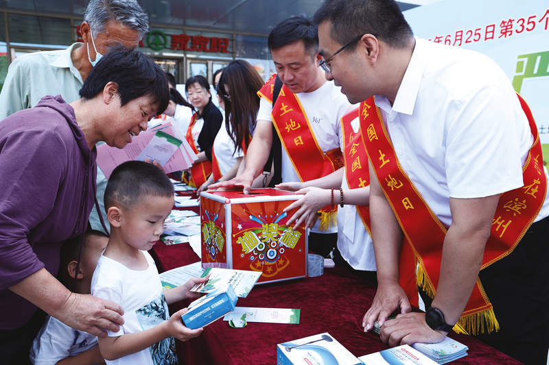 晚报讯 6月22日,在第35个全国土地日来临之际,市自然资源规划局在吾悦广场开展了“节约集约用地 严守耕地红线”主题宣传活动。活动旨在进一步向市民普及土地保护知识,引导全社会树立保护耕地、节约用地的意识。