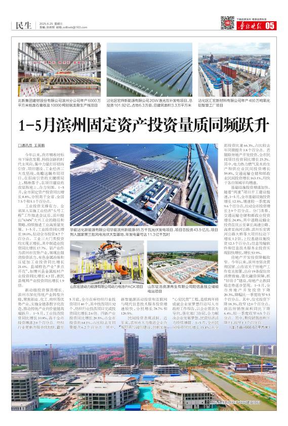 1-5月滨州固定资产投资量质同频跃升