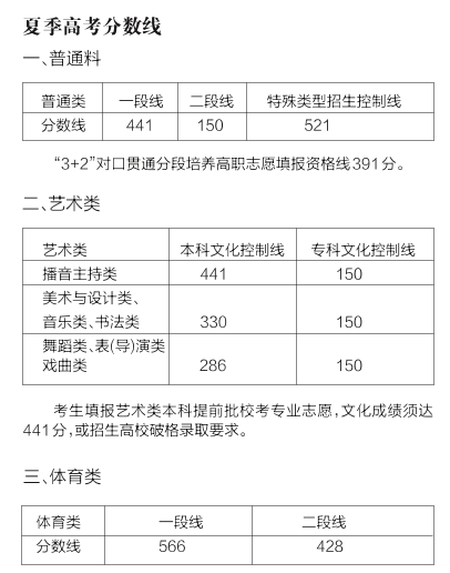 四、“世界一流大学建设高校”高水平运动队本科文化录取线441分;其他高校高水平运动队本科文化录取控制线352分;破格录取考生文化成绩须达到招生高校破格录取要求。