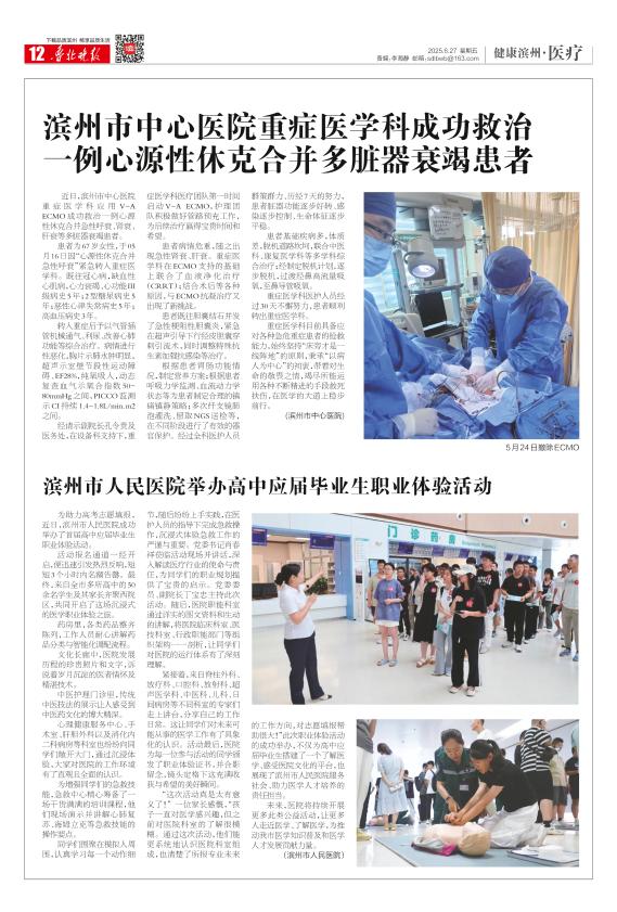滨州市中心医院重症医学科成功救治 一例心源性休克合并多脏器衰竭患者
