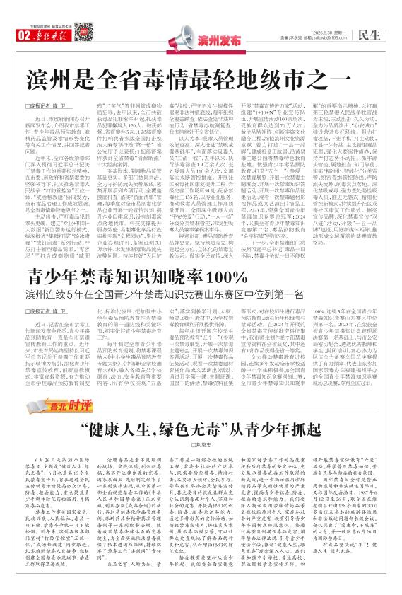 滨州是全省毒情最轻地级市之一