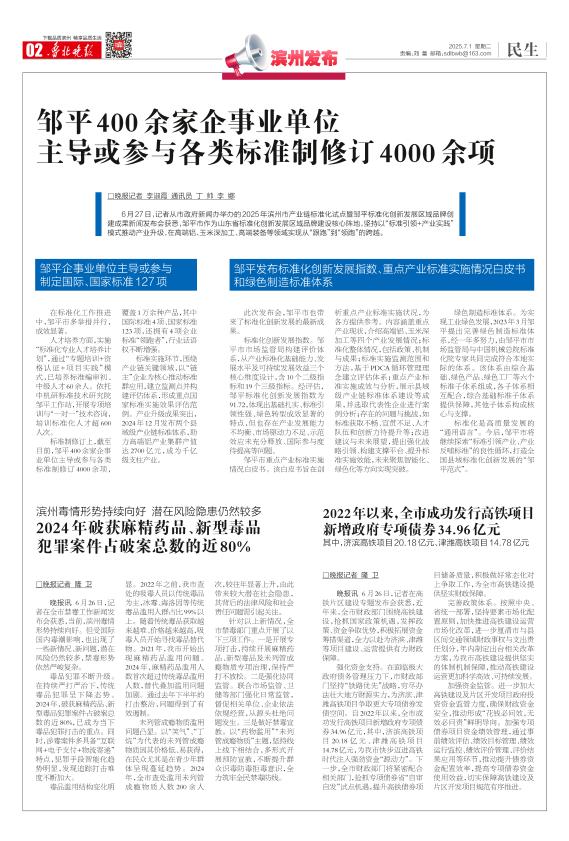 邹平400余家企事业单位 主导或参与各类标准制修订4000余项