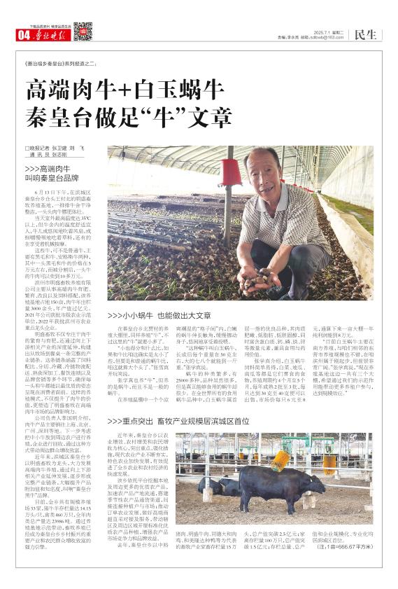 高端肉牛+白玉蜗牛 秦皇台做足“牛”文章