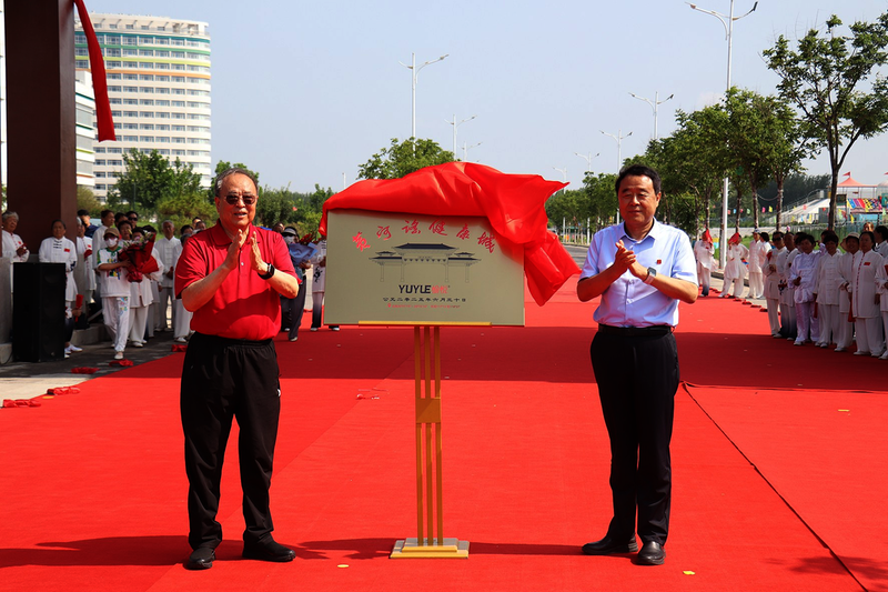 随后,中国老年体协乒乓球专委会主任、滨州市原副市长于志刚与愉悦集团党委书记、董事长刘曰兴共同为牌坊揭彩。
