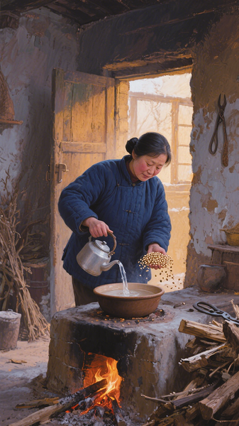母亲轻掩门户,缓缓打开炉灶,将砂锅置于其上,注入半锅澄澈的清水,再撒上一把饱满的麦仁,就这样,开启了冬日里平凡而又温暖的生活篇章。