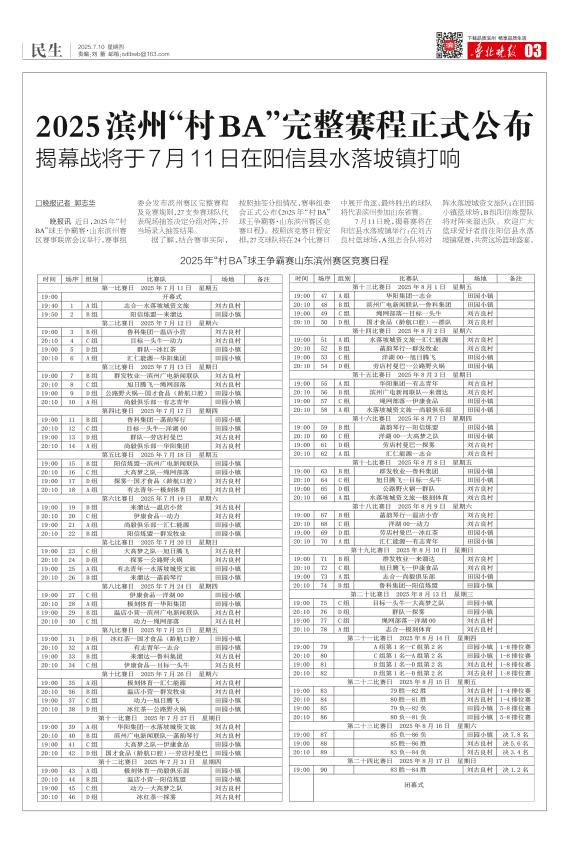 2025滨州“村BA”完整赛程正式公布