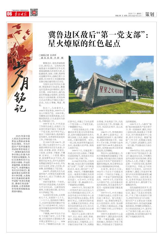 冀鲁边区敌后“第一党支部”: 星火燎原的红色起点
