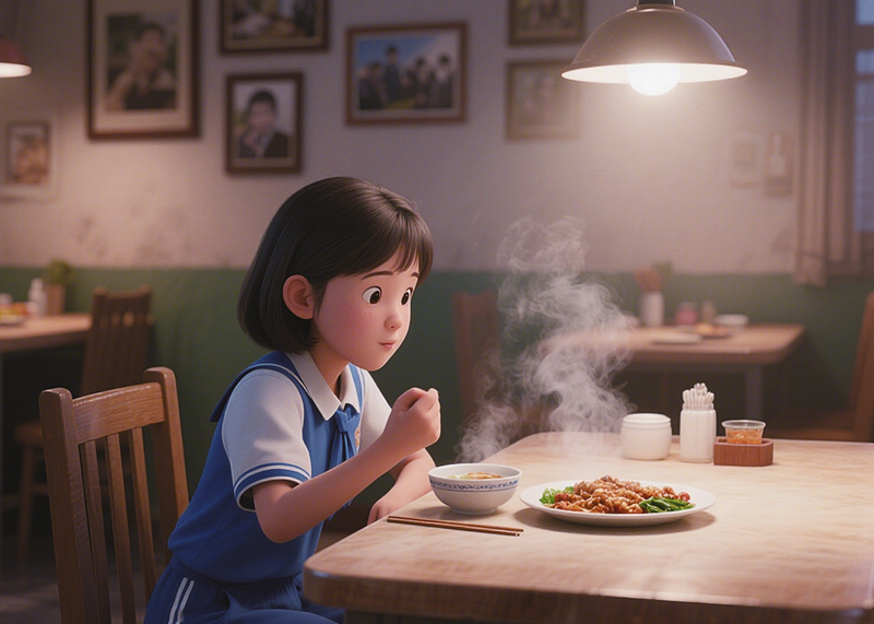 当我放学回来的时候,你已经做了一桌子的美食,我放下书包,激动地搓了搓手,拿起筷子,一口就将夹起的饭菜送入口中,你期待地问我:“怎么样?我的厨艺是不是进步啦?”我细细地品尝了几下:“嗯……不是进步了。”你瞪着大眼睛焦急地问:“怎么了?是咸了?还是淡了?”我笑着和你说:“是超越啦!”你原本的大眼睛立马眯成了一条缝,笑着和我说:“哎呀,干嘛,说话说一半,吓死我了。”随后便又笑出了声。在那昏黄的灯光下,我看到鱼尾纹悄悄地爬上了你的眼角,而你,却似乎毫无察觉,你依旧沉浸在生活的喜悦之中,陪伴着我,照顾着我的生活。