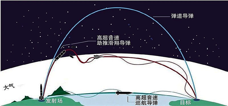 高超音速助推滑翔导弹利用导弹或火箭将有效载荷(滑翔体)推进到太空边缘(大于100千米高)。在该边缘,滑翔体与导弹分离,并利用气动升力实现远距离滑翔飞行,直至击中目标。