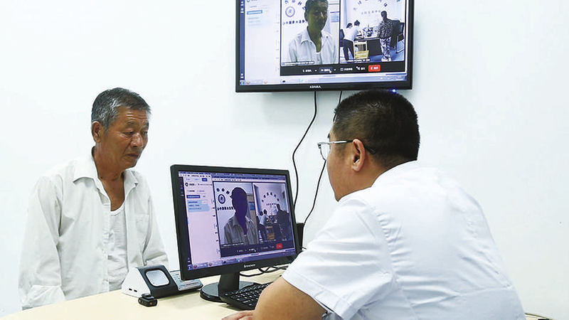 水湾镇中心卫生院的医生向就诊的肖相军老人介绍:“卫生院已经跟县医院联通了。你有什么不适都可以连线县医院的专家。”