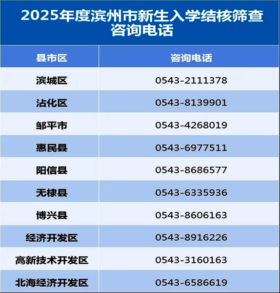 滨州市域大学新生:入学报到前,完成信息填报和线上问诊筛查即可,待入学后由学校统一组织TST检测。