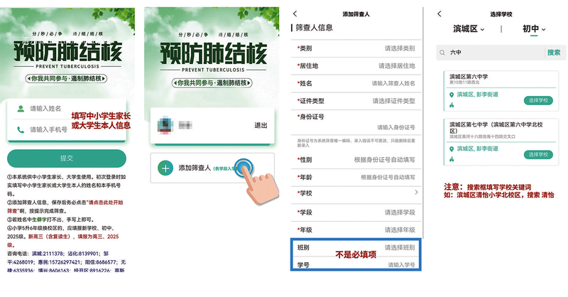 初中、高中、中专、技校等其他学校新生:先完成线上问诊筛查,再到指定医疗机构进行TST检测。