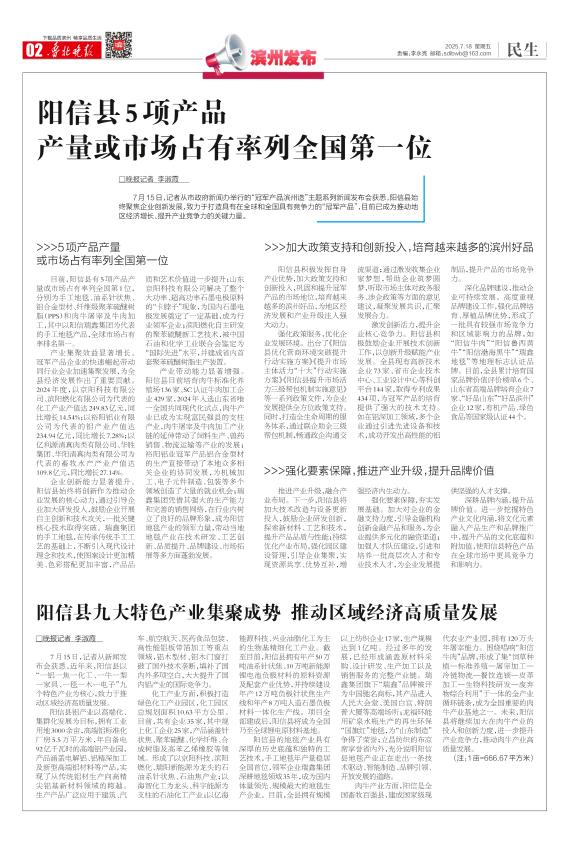 阳信县九大特色产业集聚成势 推动区域经济高质量发展