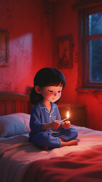 那时,我们还住在老家的宅子里。父母跑车,早出晚归是最寻常不过的。打小,我就习惯了一个人在黑夜里熬。母亲说我那时是很调皮的,小脑袋里一天到晚能闪出各种新奇的想法。那一天,天还没亮,父母就出车了。我一个人在床上翻身又爬起,摸索着玩,无意间瞥见了近旁的火柴盒。火柴划着,整间屋子是一片唯美的火红;火柴熄去,火柴棍上便剩下微弱的火星。轻轻松手,让这星星垂下去,跌撞在地上,便又溅起一池小星火。一根又一根,我沉浸其中,尽情欣赏着火柴的光亮。