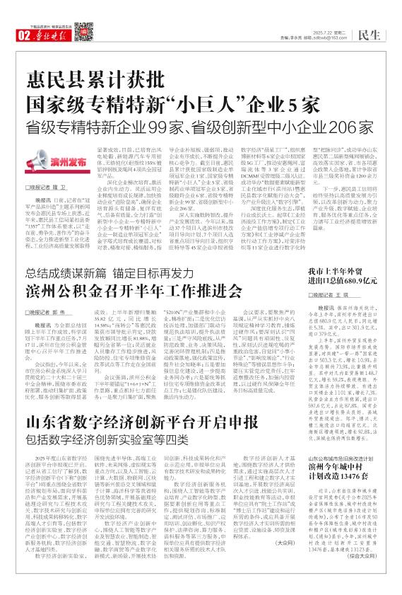 惠民县累计获批国家级专精特新“小巨人”企业5家