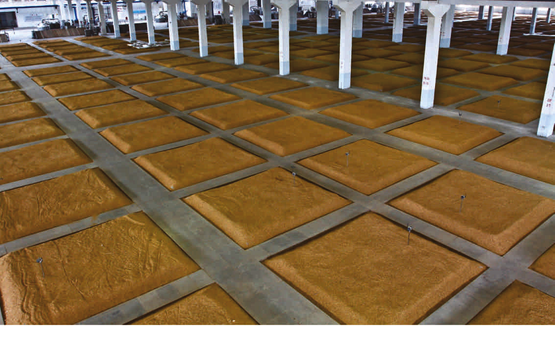 “别看咱抡的是木锨,干的可是微生物的细活儿。”这句在酿酒工人中流传甚广的“董氏名言”可谓切中要害。手要稳、眼要准,劲要匀……年过七旬的董付新眼下虽然不必跟班生产,但还是习惯性地去古贝春的“金牌手工班”看看转转,不时示范一下“动作要领”。“要轻装薄洒,跟汽上甑,里面有益微生物菌群多着呢,又娇嫩,酒醅就相当于土壤和养分,要细,要匀,要调和好才行,不然微生物菌群怎么生长?”看笔者似有所悟,他接着打了个比方,种庄稼,为啥有好有孬?种子得好吧?水肥得跟上吧?土壤还得有活性!“就说咱古贝春,粮是生态粮,窖是生态窖,酿还是生态酿,不好喝没道理嘛!这个生态酿就是咱的传统工艺,就是具体的操作,从泥池子、搭窖开始,到制曲、拌料、发酵……哪个环节不得用心,目的就是让这一锅料从粮到酒都保持活性嘛!”见我还是思忖状,他又解释,“就说发酵吧,都知道咱古贝春酒的发酵期在业内是最长的,单轮都要90天,就是为了发酵更充分,呈香呈味有益微生物菌群更多样,但如果不是生态酿,不注意细节,从窖池到原料没活性,这么长时间还不馊了酸了?”