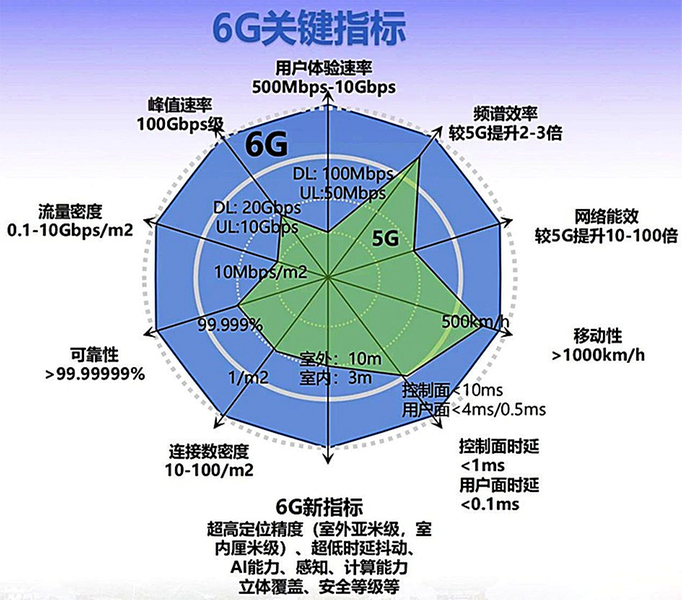 从这个技术演进图可以看出,6G相比5G实现了全方位的跨越式提升。如果说5G让我们实现了“万物互联”,那么6G将带来“万物智联”。