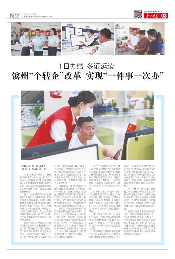 滨州“个转企”改革 实现“一件事一次办”