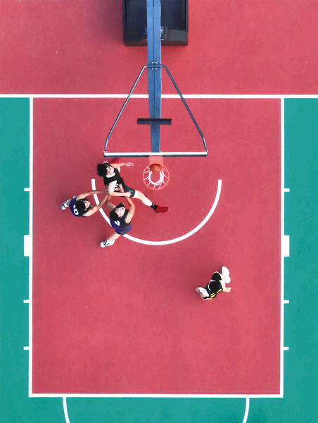 球员们皮肤黝黑,肌肉结实,动作虽不及职业球员那般精妙,却也精神抖擞、虎虎生威。看,来溜达队7号抢到球,从三分线外直杀篮下……