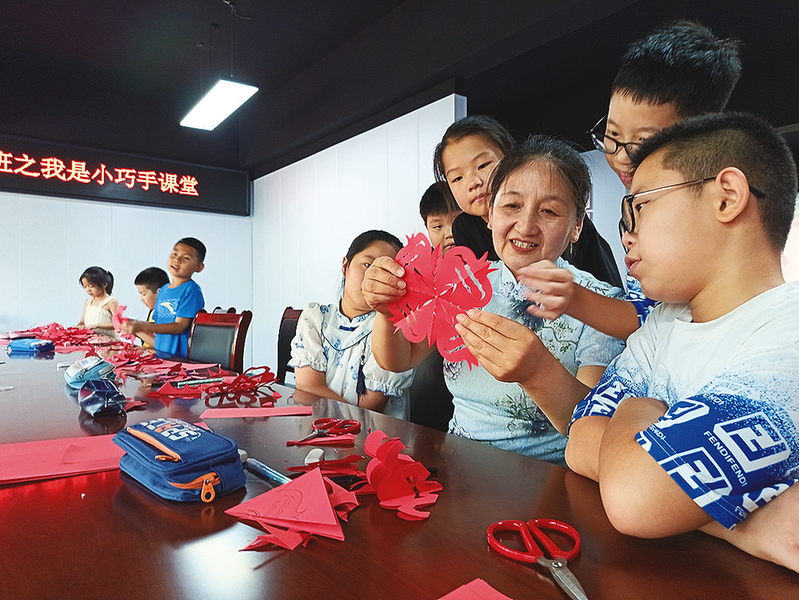 晚报无棣讯7月22日,滨州民间剪纸传承人方秀岭走进无棣县棣丰街道馨宇社区暑假公益托管班,与孩子们一起感受非遗文化的魅力,增强他们对传统文化的认同感和自豪感。
