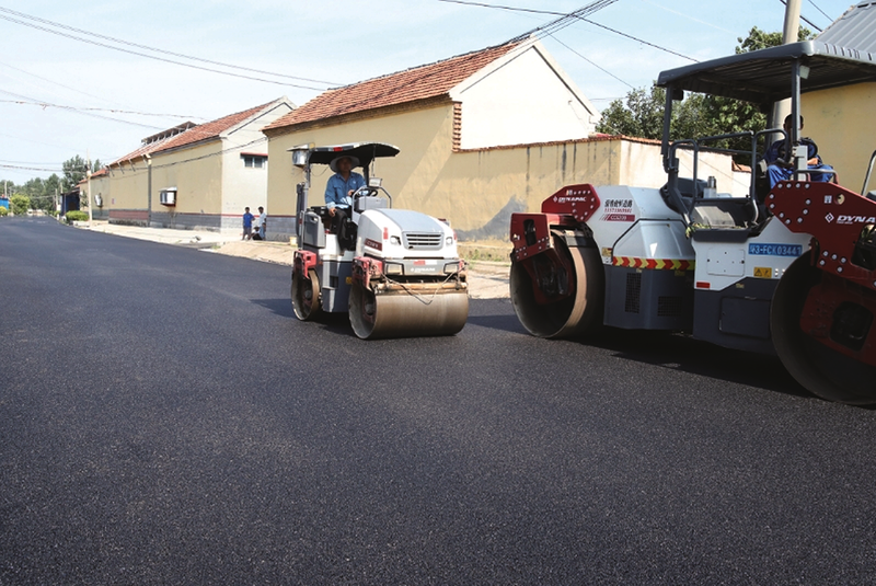 晚报邹平讯 连日来,在邹平市孙镇镇于何村,沥青摊铺机轰鸣前行,滚烫的黑色料流均匀覆盖路面,压路机反复碾压的节奏与工人挥动铁锹的沙沙声交织成劳动交响曲。经过4天的紧张施工,乡村道路罩油工程顺利完工,原本坑洼不平的乡间小路摇身一变,成为平整黝黑的柏油路面,不仅改善了村容村貌,更切实解决了村民出行难题。