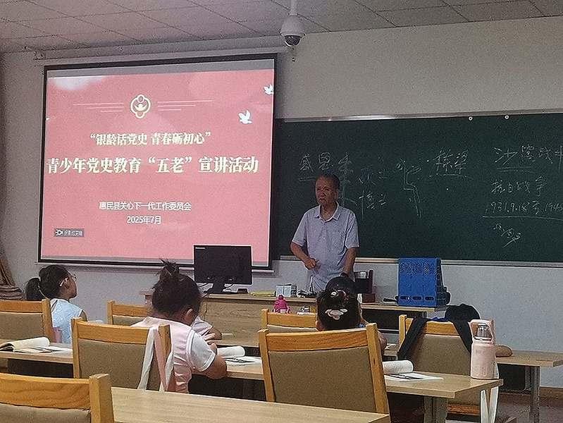 惠民县关工委依托县域品牌活动暑期公益课堂,邀请山东省关心下一代“最美五老”李向阳走进教室,开展“银龄话党史 青春砺初心”青少年党史教育“五老”宣讲活动。