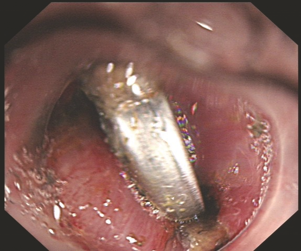 在内镜中心团队人员的精心操作下,细长的内镜轻柔探入,高清画面实时传回:那枚银色的纽扣电池,正紧紧嵌顿在食管入口第一狭窄处!孩子太小,纽扣电池大,电池死死地卡在食管入口处,操作空间有限,电池边缘太滑,种种的困难与挑战摆在医护人员面前,这是一场与时间的拉锯战。过程是艰辛的,但结果是好的,这枚危险的“定时炸弹”终于被完整取出,检查确认食管黏膜仅有轻微损伤,所有人悬着的心终于落地。