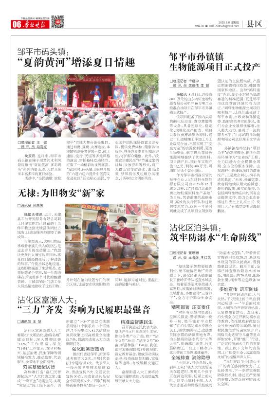 晚报讯 连日来,邹平市码头镇在梯子坝黄河水利风景区推出“夏韵黄河 多彩码头”系列消夏活动,为群众带来丰富多样的夏日体验。