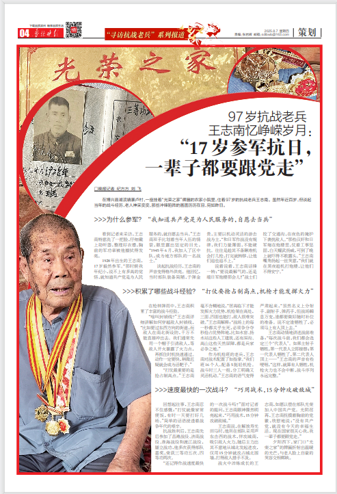 看到记者来采访,王志南特意洗了一把脸,仔细戴上助听器,整理好衣襟,胸前的军功章被他擦拭得发亮。