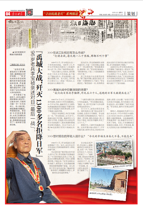 “那是日本投降后,我们打的最后一仗。”李宝祯回忆,12月27日,禹城大战正式打响。渤海军区主力部队与平禹、齐禹县大队在袁也烈司令员的指挥下,围攻禹城和晏城车站等日伪据点。至12月30日,仅剩798名拒降日军死守禹城火车站。