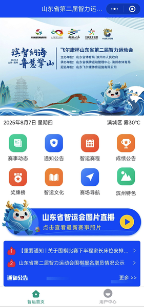 晚报讯 近日,记者在滨州市体育局了解到,为即将开幕的山东省第二届智力运动会量身打造的官方信息发布微信小程序已正式上线。