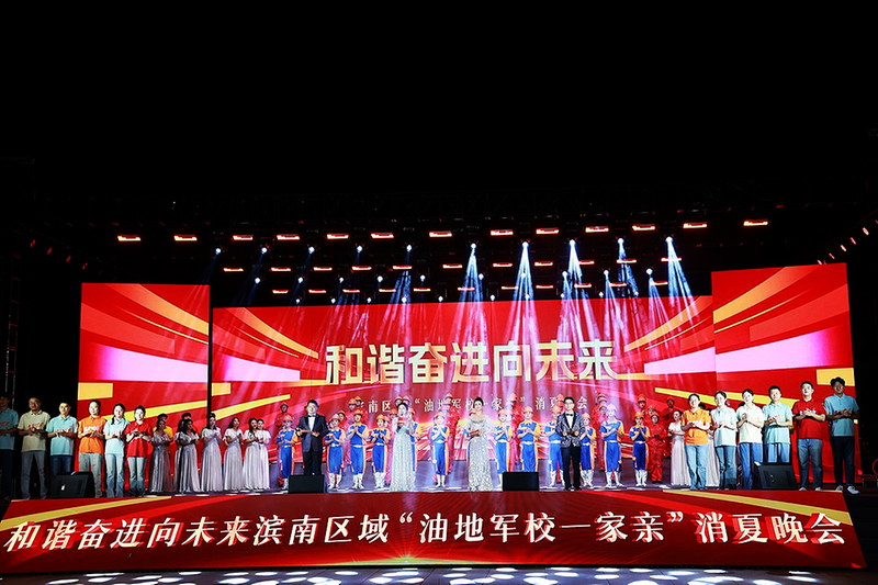 8月11日晚,“和谐奋进向未来”滨南区域“油地军校一家亲”消夏晚会在滨南体育馆文化南广场拉开序幕。现场由滨南采油厂、滨州军分区、山东航空学院、滨州市公用事业集团有限公司等相关单位组成的群众方队欢聚一堂,共同享受夏日的清凉与欢乐。丰富多彩、原汁原味的节目不仅展现了滨南独特的文化魅力,更为大家带来了惬意的休闲时光,在家门口就能享受到文化大餐。