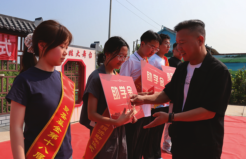 晚报沾化讯 近日,在沾化区黄升镇堤圈村举行的复圣基金第十八届捐资助学仪式上,堤圈村党支部书记、村委会主任、山东裕阳集团董事长张立军,向13名新考入大学的优秀学子每人资助2000元助学金,为其求学之路加油助力,鼓励他们好好学习,成为国家建设的有用之才。