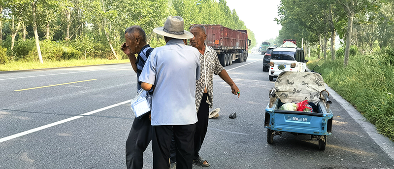 辖区民警随即也来到了现场,此时大爷缓慢走到自己的三轮车前,就想骑上车回家。担心再出意外,民警及时劝阻了老人,准备将老人护送回家。正巧,跟老人同村的村民也来到了现场,在民警和村民的共同帮助下,将老人安全送回了家中。
