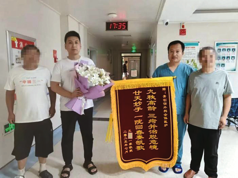 术后,患者家属对医护团队表达了深深的感激之情,送来一面锦旗,上面的文字不同寻常——“九秩高龄,三疴并治脱危境;廿天妙手,一院回春奏凯歌。”这面锦旗上的文字斟字酌句,精辟概括了这场惊心动魄的救治过程。