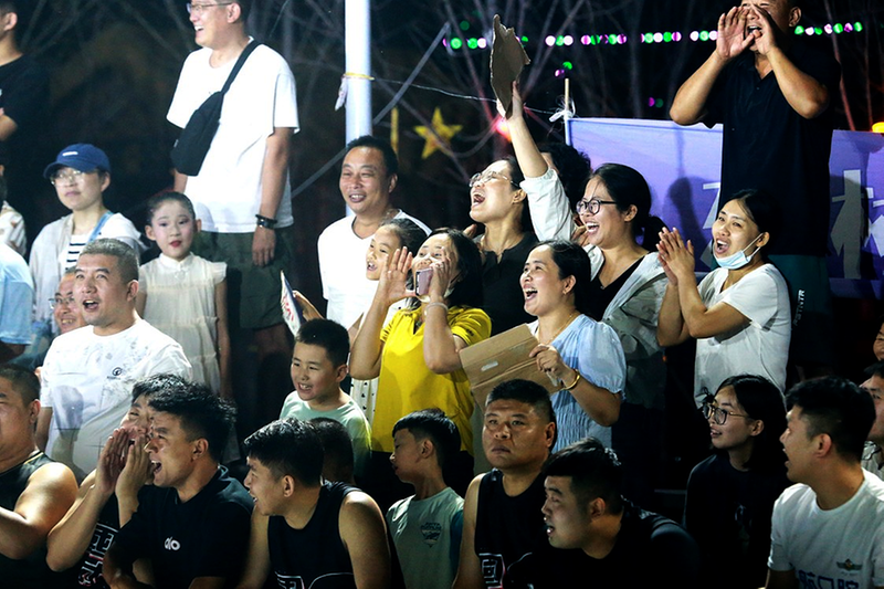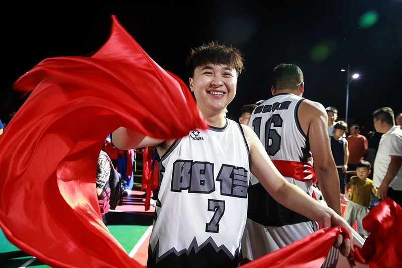 8月17日晚,滨州市阳信县水落坡镇刘古良村的篮球场被欢呼声淹没。