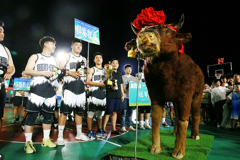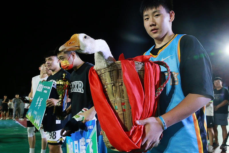 这次历时45天、吸引27支球队鏖战90场的“村BA”,奖品设计本就充满乡土智慧——冠军一头牛、亚军两只羊、季军十二只鹅,全是滨州本地特产。